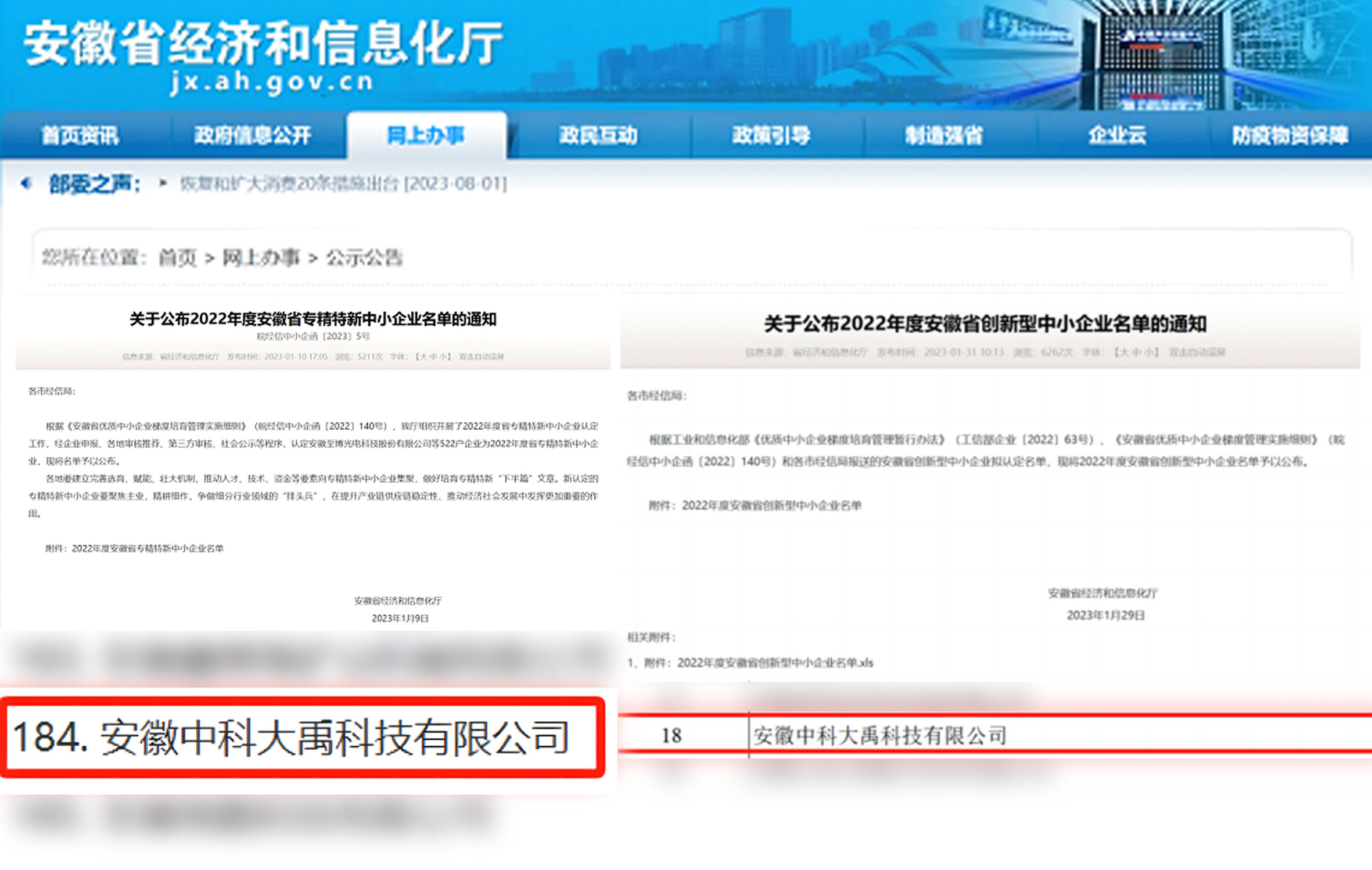 入選2022年度安徽省專(zhuān)精特新中小企業(yè) 入選2022年度安徽省創(chuàng)新型中小企業(yè)名單